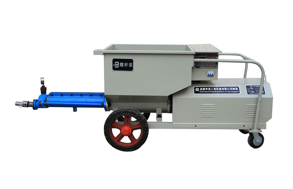 該泵結構新穎、構思獨特;避免了灌注稠漿較困難的不足,使用安全方便、效率高。本機主要由攪拌裝置、操作機構、輸漿體、增壓蝸桿、增壓定子、測壓、料斗、電控系統(tǒng)等組成,當用于噴護時,還包括噴射器,其特點如下: